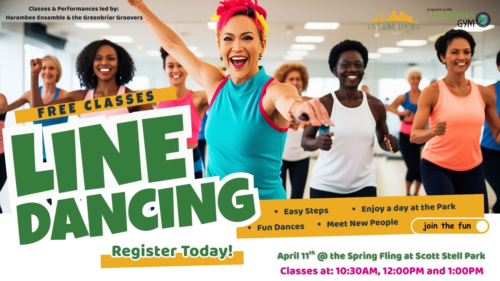 Get ready to step, slide, and have some fun at our FREE Line Dancing Classes during the Spring Family Festival at L. Scott Stell Park on April 11th from 10 AM to 2 PM!